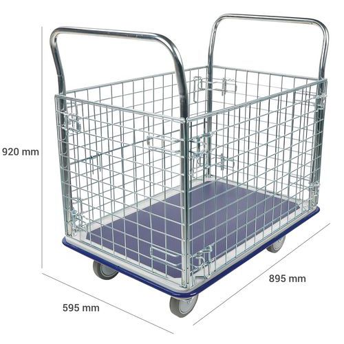 | Termék neve | Manutan Expert platós kocsi két fogantyúval és négy rácsos fallal, 300 kg-ig |
