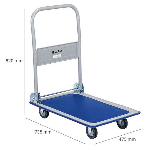 | Termék neve | Platós szállítókocsi lehajtható tolókarral 150 kg-ig - Manutan Expert |