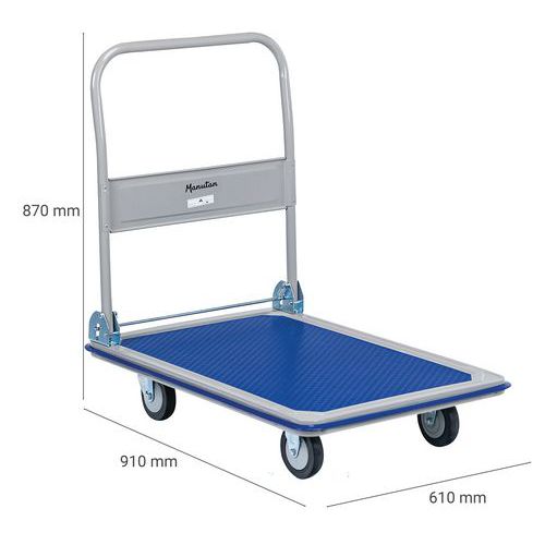 | Termék neve | Manutan Expert platós szállítókocsi lehajtható tolókarral, 300 kg-ig |