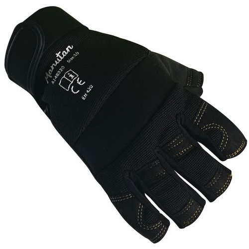 - Ujj nélküli munkakesztyű párnázott tenyérrel és ujjhajlatokkal. A párnázás csökkenti a munkavégzés közbeni rezgéseket. Tépőzáras csuklórész.