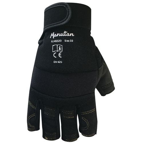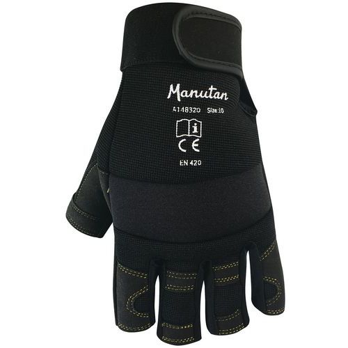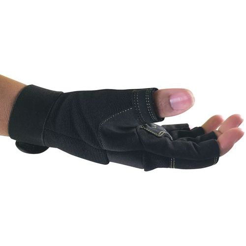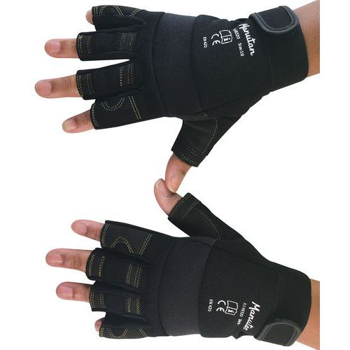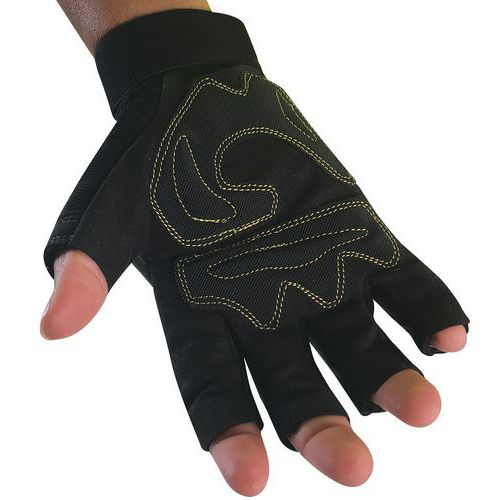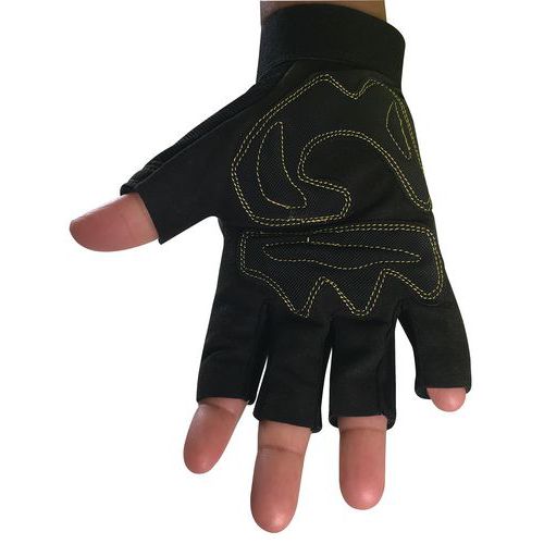 Ujj nélküli munkakesztyű párnázott tenyérrel és ujjhajlatokkal. A párnázás csökkenti a munkavégzés közbeni rezgéseket. Tépőzáras csuklórész.