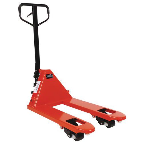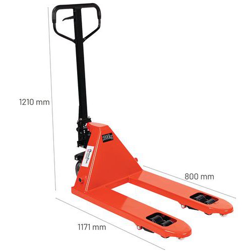 Ekwo raklapszállító kocsi megnövelt teherbírással. Alkalmas áru kirakodására és szállítására raklapokon raktárakban, üzletekben stb. A lerövidített villák alkalmasak nem standard méretű raklapok kezelésére. Rágördülő görgők, karbantartás nélküli hidraulika. Gyártói garancia az ügyfélnek : 10 év Teherbírás (kg) : 2000 kg
