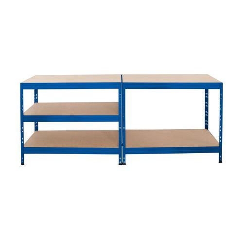 Csavarmentes polcállványok Manutan Expert Rapid 3 alkalmasak irodákba, műhelyekbe és raktárakba. A polcok minőségi nagy sűrűségű (HDF) forgácslemezből készültek, és 40 mm-es raszterben állíthatók. Műanyag védőtalpak. 1 - 1,5 mm vastagságú acéllemez szerkezet. Felületkezelése horganyzással vagy porszórásos lakkozással. A polcállvány állványrendszerbe kapcsolható az összekötő csapoknak köszönhetően. Az állványok két részből állnak, így a polcállvány könnyen műhelyasztallá alakítható.