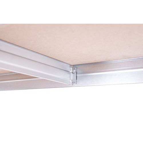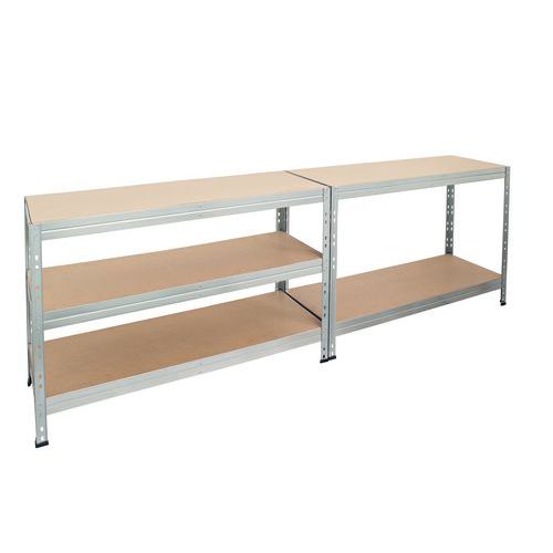 Csavarmentes polcállványok Manutan Expert Rapid 3 alkalmasak irodákba, műhelyekbe és raktárakba. A polcok minőségi nagy sűrűségű (HDF) forgácslemezből készültek, és 40 mm-es raszterben állíthatók. Műanyag védőtalpak. 1 - 1,5 mm vastagságú acéllemez szerkezet. Felületkezelése horganyzással vagy porszórásos lakkozással. A polcállvány állványrendszerbe kapcsolható az összekötő csapoknak köszönhetően. Az állványok két részből állnak, így a polcállvány könnyen műhelyasztallá alakítható.
