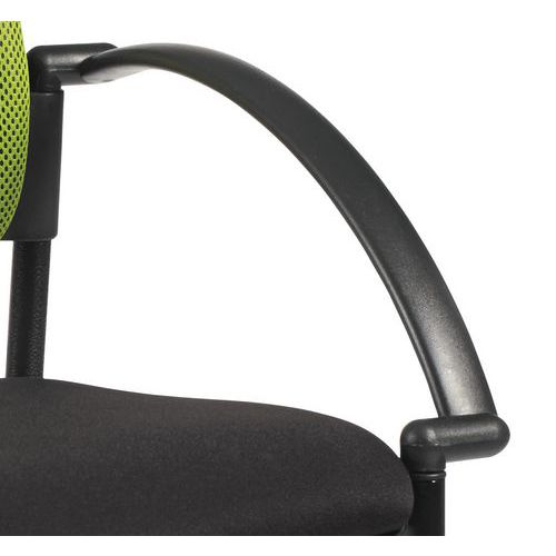Két darabos karfás konferenciaszék készlet. Légáteresztő hálóból készült háttámlával, különböző színekben. M1 tűzállóságú 100% poliészterből készült kárpitozott fekete ülőlappal. Poliéter habszivacs ülőbetéttel.