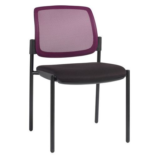 Kétdarabos fémszerkezetes konferenciaszék készlet. Légáteresztő hálóból készült háttámlával, különböző színekben. M1 tűzállóságú 100% poliészterből készült kárpitozott fekete ülőlappal. Poliéter habszivacs ülőbetéttel.