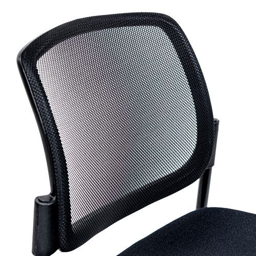 Konferenciaszék tárgyaló- és egyéb termekbe. 100% poliészter ülőrésszel és poliéter habszivaccsal. A légáteresztő hálós háttámla meggátolja a nem kívánt izzadást. Tűzállóság: M1. Akár 4 szék is egymásra rakásolható.
