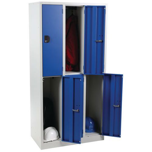 A hegesztett öltözőszekrények rekeszekkel több színkivitelben alkalmasak a dolgozók személyes tárgyainak tárolására, a munkahelyeken, öltözőkben vagy sportklubokban.