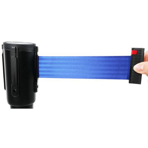 Torlaszoló oszlopok kihúzható, 2 m hosszú rugalmas szalaggal, ideálisak a hozzáférés meghatározására, személyek ideiglenes navigálására, belépés megakadályozására stb.