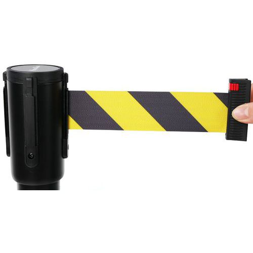 Torlaszoló oszlopok kihúzható, 2 m hosszú rugalmas szalaggal, ideálisak a hozzáférés meghatározására, személyek ideiglenes navigálására, belépés megakadályozására stb.
