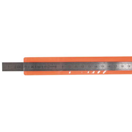 Félkemény fém vonalzó bevésett jelölésekkel. A mértékegység az egyik oldalon mm-ben, a másik oldalon 0,5 mm-ként szerepel. Gyártói garancia az ügyfélnek : 10 év