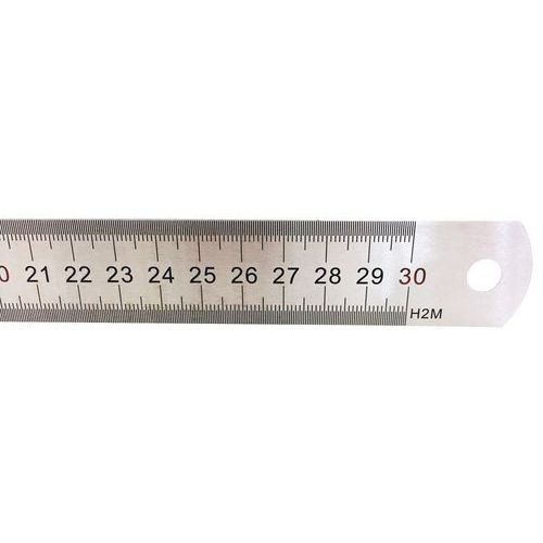 Félkemény fém vonalzó bevésett jelölésekkel. A mértékegység az egyik oldalon mm-ben, a másik oldalon 0,5 mm-ként szerepel. Gyártói garancia az ügyfélnek : 10 év