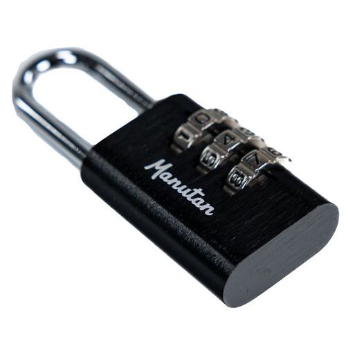 Manutan Expert számkódos biztonsági lakatok. A számkombináció három tárcsával állítható be. Alumínium ház kiváló minőségű acél kengyellel.