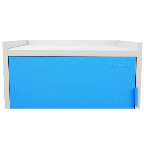 A műhelyszekrény kiválóan alkalmas szerszámok, munkahelyi eszközök, összekötő elemek és egyéb tárgyak elhelyezésére. A felső felületét magasított perem szegélyezi a tárgyak leesésének megakadályozására.