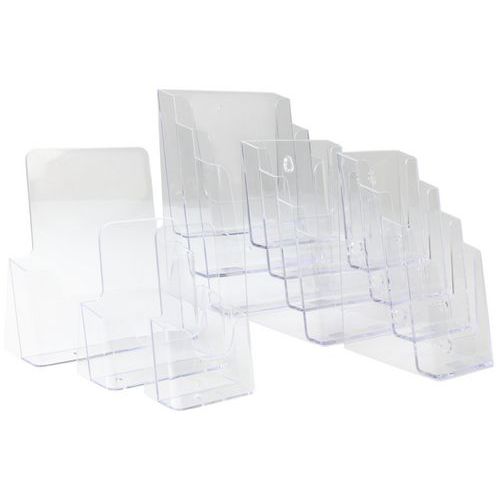 Pultos tárolóállványok szórólapra, reklámbrossúrákra és más hirdetési anyagra. Egy zsebes, álló tájolás.