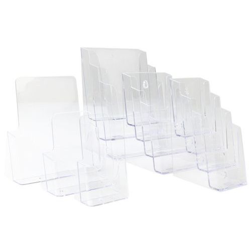 Pultos tárolóállványok szórólapra, reklámbrossúrákra és más hirdetési anyagra. Egy zsebes, álló tájolás.