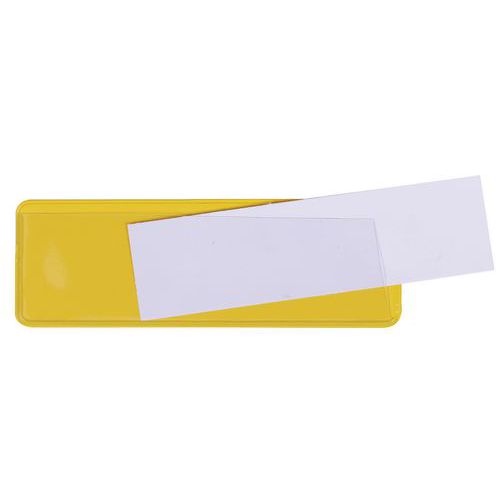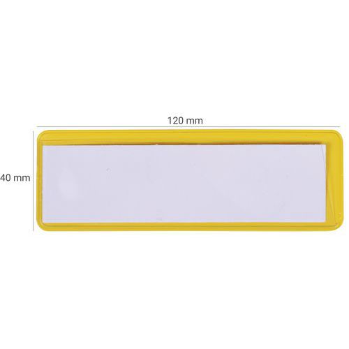 Öntapadós információs címkék polcok feliratozására és jelölésére. Elölről átlátszó műanyag tok a leírás vagy címke beillesztéséhez. A címke oldalról egyszerűen behelyezhető. 100 db-os csomag.