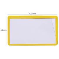 Öntapadós információs címkék polcok feliratozására és jelölésére. Elölről átlátszó műanyag tok a leírás vagy címke beillesztéséhez. A címke oldalról egyszerűen behelyezhető. 100 db-os csomag.