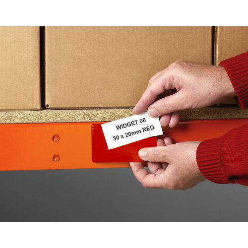 Öntapadós címkék polcok feliratozására és jelölésére több színváltozatban. Elölről átlátszó műanyag tok a leírás vagy címke beillesztéséhez. A címke oldalról egyszerűen behelyezhető. 100 db-os csomag.