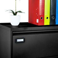 Fém iratszekrények négy fiókkal irodákba, rendelőkbe stb. Fiókonként két sín az akasztós irattárolóknak. Jelölőcímkék elhelyezésére szolgáló fülekkel. A fogantyús kialakítású fiók megkönnyíti a nyitást. A felborulás elleni védelem egyidejűleg csak egy fiók kinyitását teszi lehetővé. A korpuszon lévő központi zárral zárható.