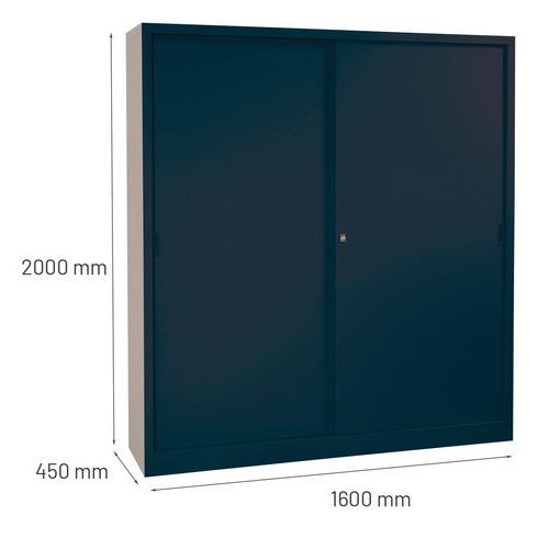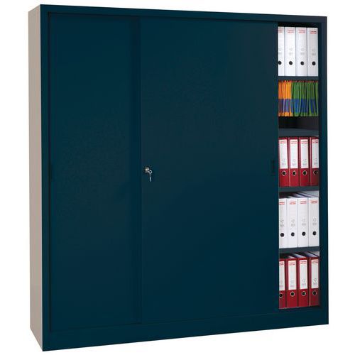 Tágas irodai szekrények iratok, dokumentumok, akták stb. tárolására. Zárható, helytakarékos tolóajtóval. Négy polccal. A polcok magassága 36 mm-es lépésekben állítható, függő iratmappákkal használható (nem tartozék). Maximális polconkénti terhelhetőség: 60 kg.