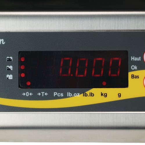 Rozsdamentes kompakt mérleg az áru tömegének ellenőrzésére raktárakban vagy boltokban. Por és fröccsenő víz elleni védőburkolattal rendelkezik. Piros LED háttérvilágítású kijelző. Integrált tölthető akkumulátor kb. 80 órás működtetéssel. IP-védelem : IP 67 Gyártói garancia az ügyfélnek : 3 év