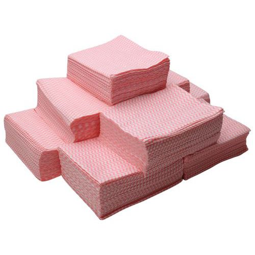 Univerzális textília törlőkendők négy színváltozatban. Alkalmas élelmiszeripari felhasználásra is. A puha szövetű anyag nem sérti a felületet. Jó abszorpciós képesség, ismételten használható. 1 csomagolás tartalma 500 db törlőkendő.