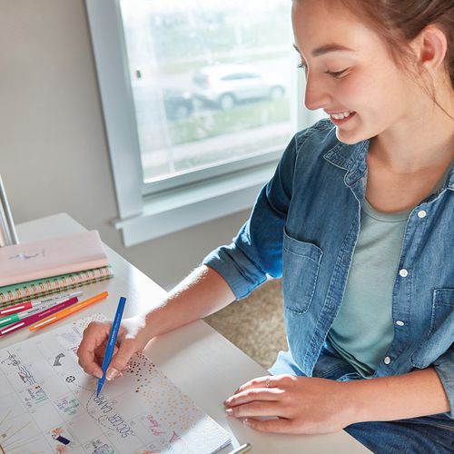 Színes tollkészlet, amely nem folyik át a papíron. 16 darab markert tartalmazó csomag nagyon erős heggyel. 16 különböző színben.
