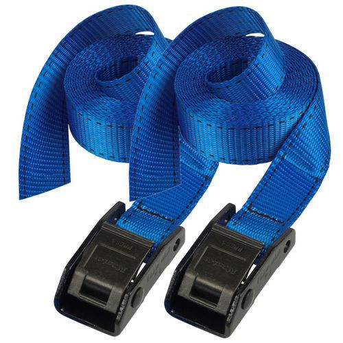 db rögzítőpánt készlet megerősített csattal. Megerősített csat a nagyobb teherbírásért. A hevederek hossza 2500 és 5000 mm, szélessége 25 mm. Maximális terhelhetősége 150 kg. Teherbírás (kg) : 150 kg
