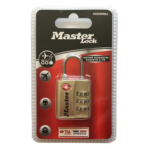 A TSA által jóváhagyott poggyászkombinációs lakat. Zárszélesség 30 mm. A fém zártest sérülésálló. 3 mm átmérőjű acélbilincs vágásálló. Állítható 3 számjegyű zárkombináció. Master Lock biztonsági osztály ™ 4.