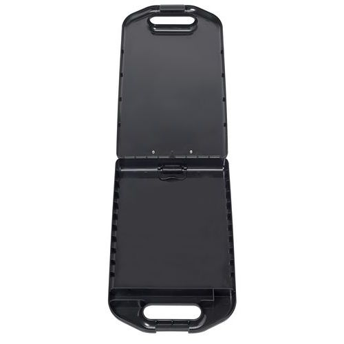 Műanyag vágólap masszív írófelülettel és tárolóhellyel. A belső tárolóhelynek köszönhetően megvédi dokumentumait az ütésektől, a portól és a fröccsenő víztől. Külön rekesz a tollak számára. Praktikus szállítófogantyú a jó fogásért (csak a modellnél) fogantyúval). Műanyag zsanérok és kapcsos zárás. A4 formátumú dokumentumokhoz. Lapos külső kapocs, amely körülbelül 8 mm-re nyílik. Műanyag belső klip, amely körülbelül 3 mm-re nyílik. Gyártói garancia az ügyfélnek : 3 év