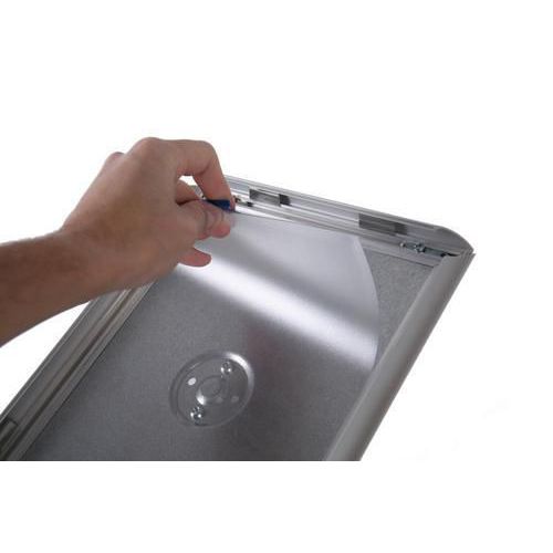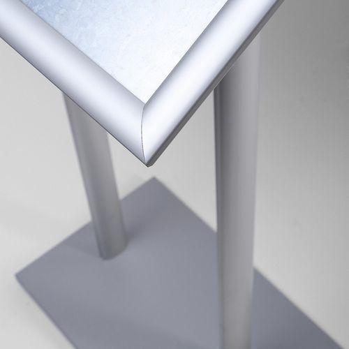 Reklámtáblák téglalap alapzattal. A plakátkeret polipropilén fóliával rendelkezik. Állítható kerettájolás, alkalmas szórólapok, fényképek stb. bemutatására. Plakáttartó hegyes élekkel és 25 mm profillal.
