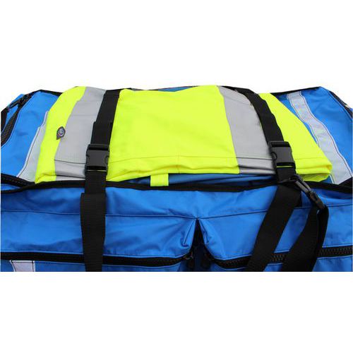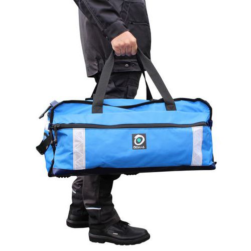 Az összes felszerelés egy táskában való tárolására: sisak, kesztyű, szigetelő párna, csizma, heveder, munkaruha stb.