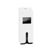 Női higiéniai kellék adagoló iskolákba, sportpályákra, nyilvános WC-kbe stb. Akár 35 db egészségügyi betét és 30 db tampon tárolására (a betétek maximális mérete: 11,5 x 9 cm). Az egyik higiéniai termék kihúzása automatikusan betölti a következőt. Hengerzárral, kulccsal zárható. Rozsdamentes acélból készül matt rozsdamentes acél, fehér és fekete kivitelben.