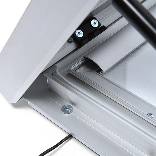 Vízálló plakátkeret alumínium szerkezettel, alkalmas bel- és kültérbe egyaránt. A plakáttartó zárható. 4 mm vastag keményített ESG üveg. Megvilágítás színhőmérséklete 5000 K. Színhőmérséklet: Meghatározza a kelvinben megadott fehér fény színspektrumot. 2700 - 3200 K - meleg fehér 3 201 - 5 000 K - nappali fehér 5 001 - 7 000 K - hideg fehér ESG üveg: Speciális, biztonsági keményített üveg - ajtóüvegként vagy autók szélvédőjeként használják.