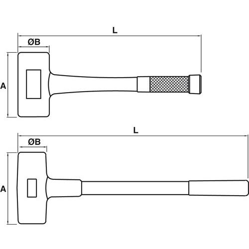 Nem visszapattanó kalapácsok acél golyóscsapágyakkal töltött fejjel. Csökkenti a szilánkok kockázatát, amikor fémalkatrészekre ütődik. Kicsi keménység: A86. Teljes nitril-gumival (NBR) borítva, amely -20 °C és +90 °C között ellenáll °C.