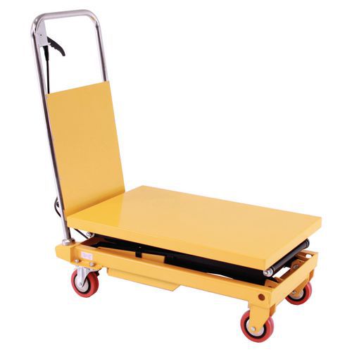 Mobil hidraulikus emelőasztal, 150 kg-ig, asztallap mérete 74 x 45 cm, dupla ollóval