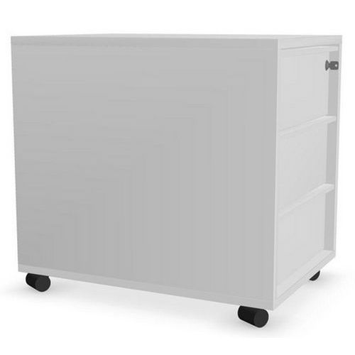 Melaminból készült Misao mobil konténer 1 mm-es élekkel. Alsó fiók akták felakasztására. Fiók magassága 8,6 cm, szélessége 50 cm. Függesztett irattartó A4-es és foolscap fájlokhoz. Központi zár borulásvédelem nélkül. Fogantyú eloxált alumínium profilból. Az egyes fiókok maximális terhelhetősége: 25 kg. Forgó görgők 37 mm átmérővel.