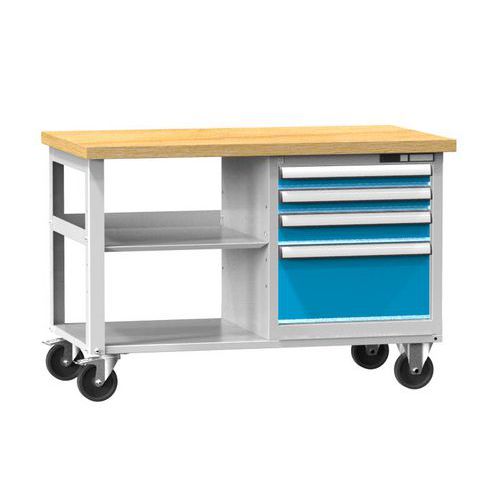 Mobil műhelyasztalok PPS Multiplex, 81 x 120 x 70 cm, 4 fiók és 2 polc, bükk