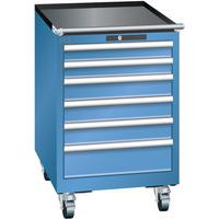 Lista mobil műhelyfiókos szekrény, 6 fiókkal: 2x75mm + 3x100mm + 1x150mm, kék Lista mobil műhelyfiókos szekrény, 6 fiókkal: 2x75mm + 3x100mm + 1x150mm, kék