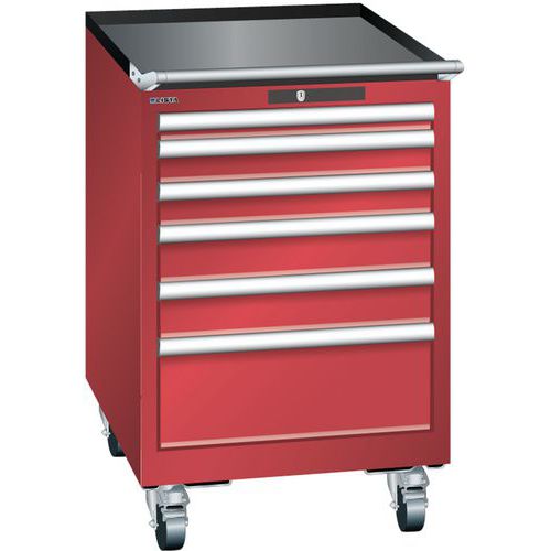 Lista mobil műhelyfiókos szekrény, 6 fiókkal: 2x75mm + 3x100mm + 1x150mm, piros Lista mobil műhelyfiókos szekrény, 6 fiókkal: 2x75mm + 3x100mm + 1x150mm, piros