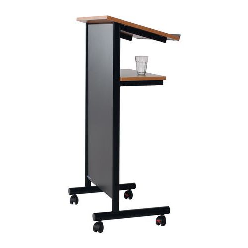 A görgethető szónoki pultok alkalmasak ülés- és konferenciatermekbe. Ferde lappal és léccel rendelkeznek, ezáltal könnyen rá lehet pillantani az iratokra, alul pedig polc található. Teljes előlap. A négy görgővel könnyen áthelyezhető. A két görgő fékezett.