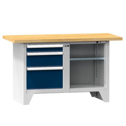 Moduláris műhelyasztal PS1-4, 1500 x 700 x 880 mm, bükk, szürke-sötétkék