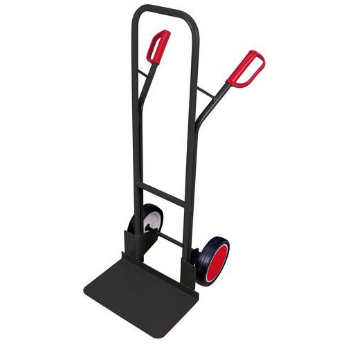 Acél lapát nagy lapáttal 480 x 300 mm. Két műanyag biztonsági fogantyú. Gumiabroncsok acélfelnire vagy tömörgumi kerekek műanyag felnire, precíziós golyóscsapágyakkal és műanyag kerékburkolattal. Keret felületkezelés porfestékkel RAL skála szerint. Ütés- és karcálló.