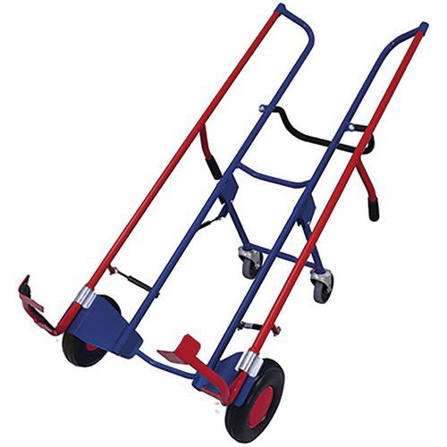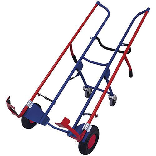 Gumiabroncstartó támasztó kerekekkel. Formázott tengely és emelőkaros emelőrendszer. 540 - 820 mm átmérőjű gumiabroncsokhoz. A fogantyú felülete puha műanyaggal van bevonva. Gumiabroncs rögzítés rugóval. Gumiabroncsok acélfelnire vagy tömörgumi kerekek műanyag felnire, precíziós golyóscsapágyakkal és műanyag kerékburkolattal. Keret felületkezelés porfestékkel RAL skála szerint. Ütés- és karcálló.