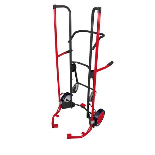Gumiabroncstartó támasztó kerekekkel. Formázott tengely és emelőkaros emelőrendszer. 540 - 820 mm átmérőjű gumiabroncsokhoz. A fogantyú felülete puha műanyaggal van bevonva. Gumiabroncs rögzítés rugóval. Gumiabroncsok acélfelnire vagy tömörgumi kerekek műanyag felnire, precíziós golyóscsapágyakkal és műanyag kerékburkolattal. Keret felületkezelés porfestékkel RAL skála szerint. Ütés- és karcálló. CE Teherbírás (kg) : 200 kg
