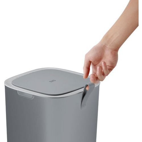 Okos négyzet alakú szemetes műanyagból, érzékelővel és kapcsolóval felszerelve, hogy a fedél egy egyszerű mozdulattal nyitható legyen. A fedél 5 másodperc elteltével automatikusan és hangtalanul záródik. Ez a modell táskatartó gyűrűvel is rendelkezik, hogy a táska biztonságosan a helyén maradjon, valamint puha szilikon fogantyúval. A fedél körüli tömítőgyűrű megakadályozza, hogy a kellemetlen szagok a szemetesbe kerüljenek. 4 AAA elemet igényel (nem tartozék). alacsony energiafogyasztás.