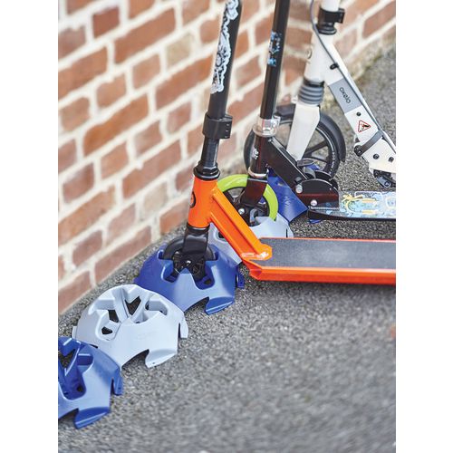 Robogóállvány átgondolt kialakítással, minden modellel kompatibilis. A megfelelő távolság megtartása érdekében kettőt egymásra lehet helyezni. Kerékszélesség kompatibilitás: minden kerék 25 és 38 mm között. A robogó állványai a középső tengelyen lévő furat segítségével rögzíthetők a talajhoz.