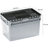 Dobozok megfelelő kezelése görgős szállítószalagokon. A konténerek egymásra és egymásra rakhatók. Egyszerű és gyors zárás. Tömítő zsanérok a hatékonyabb záráshoz.