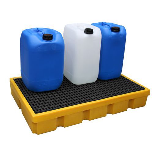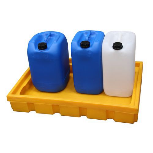 Vízre veszélyes anyagok és éghető anyagok tárolására alkalmas műanyag felfogó kádak. Polietilénből készül. Elérhető műanyag rácsos vagy rács nélküli változatban kék színű kivitelben. Sav- és lúgállóság Víz, vízoldatok Max. sztatikus terhelés (kg) : 250